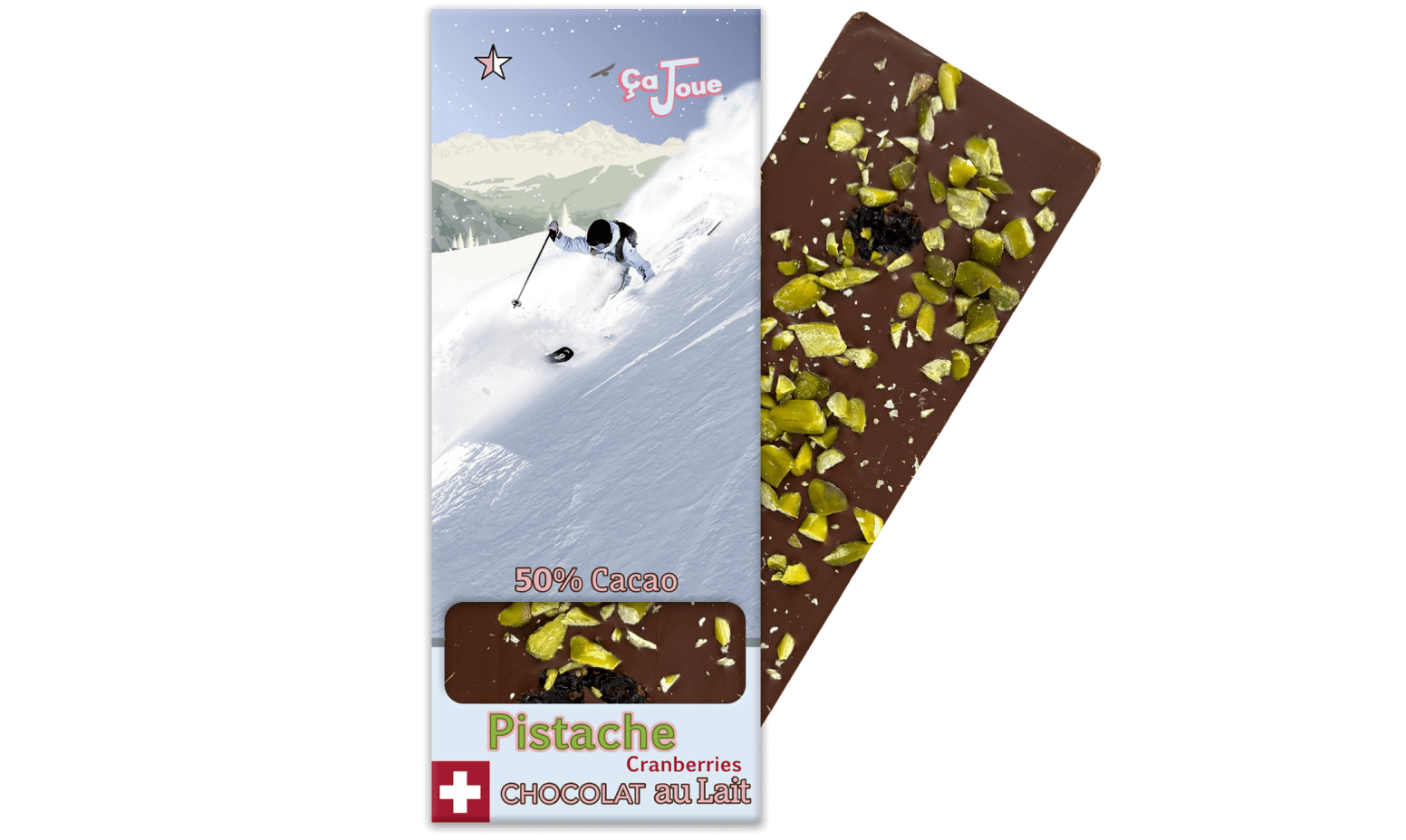 Les Chocolats Ça Joue sont honorés par la collaboration de Jenna pour une édition limitée : un chocolat au lait à 50 % de cacao avec pistache et cranberries.