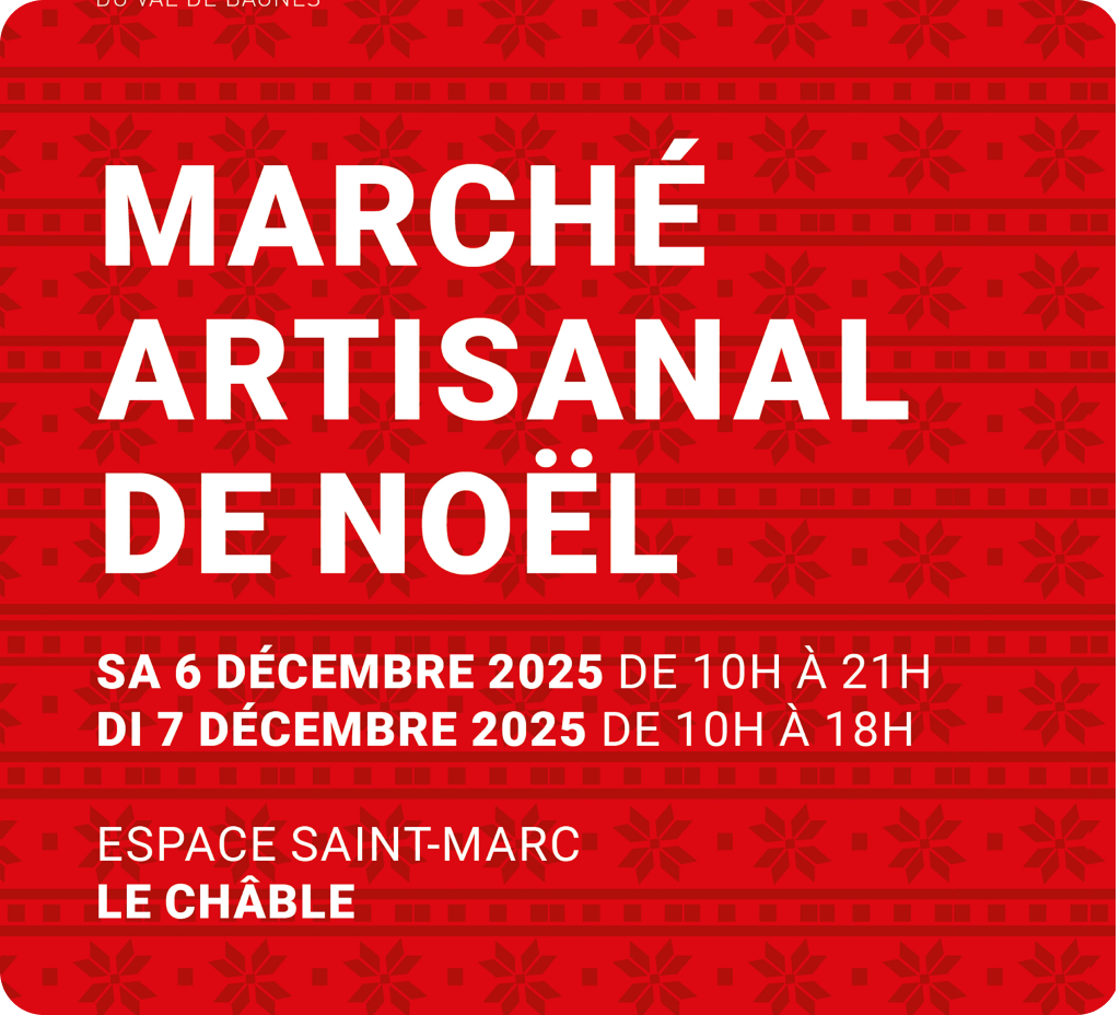 Retrouvez-nous au marché de Noël de Bagnes organisé par l'association Bagn'Art à l'Espace Saint-Marc au Châble les 6 et 7 décembre 2025: